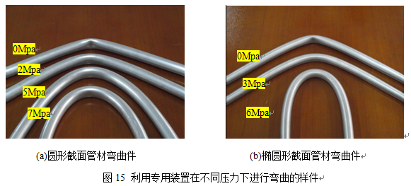 - 传统的解决方案有数控弯曲,内置橡胶棒和充入细沙,但是他们都有各自的缺点,数控弯曲的设备比较昂贵,内置橡胶棒则不易取出弹性芯模,而现在仍然在使用的充入细沙则生产效率低,质量不稳定。此方法制成的管件操作简单,设备简单,可以大批量的生产。 采用内部加压弯曲的方法,使用内部施加约束的方式实现管端密封,使用可靠,方便快捷。