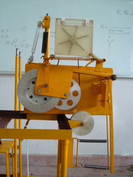 - 该机构能实现吊箱的恒速缓慢降落,这种技术被巧妙的用在吊箱安全保护装置中,这也是本套机构闪亮点。利用弹簧制成刹车系统,当吊箱内重力发生变化,弹簧长度也发生相应的线性变化,实现根据不同重力产生不同制动力矩来平衡吊箱下降过程中速度的改变,从而实现吊箱下降速度的基本恒定。又在此基础上加了阻尼水箱,用于吸收制动过程中由于制动力不连续带来的振动,使升降机下滑速度变得更为平稳,保证机构具有高的可靠度。