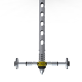 - 手杖设计全长900mm,主体部位采用铝合金,采用管状中空,并周身开孔的方式来减轻重量。其结构包括:电筒式手柄;物品储备箱;指南针;减震机构;打击机构;拉杆车机构;支架。其中打击机构能实现破窗功能,拉杆车用来方便购物;减震机构给使用者带来更多的舒适性和安全性;物品储备箱用来储备物品;手柄处实现照明功能;支架可用来辅助户外拍照;指南针在游玩出行时派上用场。