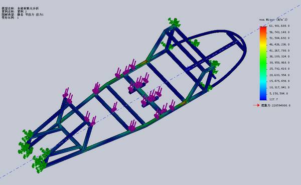 - 在秉承节能环保的理念上,推出高效动力的新型车。在车身造型设计上,采用低风阻仿生学的设计。运用模块化设计思路,通过对车身、车架、车体结构、动力系统、传动系统等各方面的优化,达到低风阻、轻量化、低高效、低碳环保、合理地人机工程要求。运用CAE有限元分析、校核各部件机械性能并做相应调整。