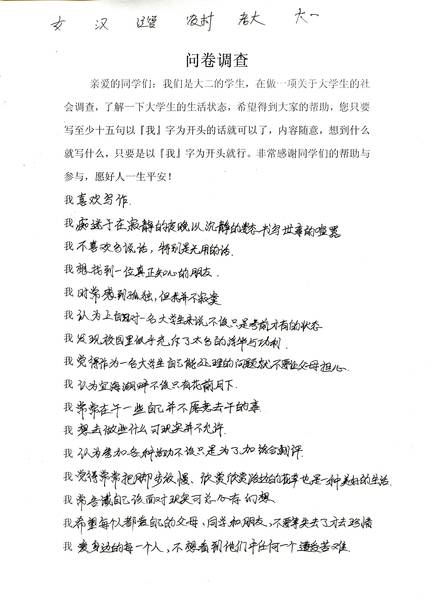 - 以“我”字为开头,随意造句,每份问卷共设计了十五个句子 走访 问卷 个别交谈