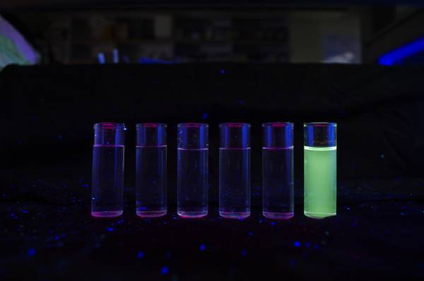 - 我们在学习中了解到Cr3+离子具有限制作物根的生长、影响农产品产量、抑制细胞分裂、对骨细胞合成产生损害甚至会有诱发基因突变和致癌的可能。目前实验室检测铬含量的方法多数用于检测总铬含量,单独检测三价铬的方法普遍操作繁复,应用范围较窄。 相比之下,荧光光度法更加直观,操作简便,而且同样具有灵敏度高、检测限低的优点。特别是近年来荧光技术发展迅速,在化学检测、生物检测、医疗诊断和传感器等领域得到广泛应用。但是目前国内外还没有用荧光技术检测Cr3+离子的方法。 目前我们实验室合成了一种带吡啶基的TPE衍生物,可以在不同酸度的水溶液中发射出不同颜色和亮度的荧光。相比于众多过渡金属和重金属如(Pb2+、Cd2+、Hg2+、Ag+),除Fe3+离子之外,Cr3+离子最容易水解造成pH值降低。因此,在含有包括Cr3+离子多种金属离子的混合溶液中加入荧光分子,即可通过溶液的荧光颜色和强度变化选择性地、快速地检测到Cr3+离子的存在;并通过工作曲线确定浓度高低,并且我们尝试将这种荧光物质分散到滤纸中,做成一种类似于pH试纸的可以方便检测水中铬离子的试纸,从而将这种方法发展成为一种简便易行的、高效率的检测技术。