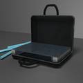 - 在内胆包的两侧装入具有一定硬度的板块,该板块能够支撑笔记本电脑,板块与电脑用PE棉隔开防止电脑被损坏;在板块的外面是由耐磨损材料制成的包的外表面;内胆包的下表面是有能够支撑整个内胆包和笔记本电脑重量的桌腿;内胆包的上下两侧由拉链连接;在内胆包的一侧有可以将电脑和板块分离的板块使电脑能更快的散热;该板块和内胆包连接不用时可将其放入内胆包。