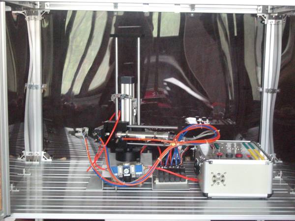 - 作品设计、发明的目的: 本作品主要是设计研发一套集各种气缸、气动手爪等于一体的教学设备,以应用于《液压气动原理》、《工业机器人》、《物流设备与控制》、《单片机原理与应用》、《PLC与电器控制》的课程的教学实验中。 基本思路: 应用多种气动元器件,以最大程度地实现在气动原理方面的认知与控制应用,机械结构力求简单、精度适中,方便教学应用。 创新点: 巧妙地将多种气缸、气动手爪等结合在一起,构成了一套具有4个自由度的机器人,在控制系统设计上可采用单片机、ARM、DSP等的微处理器,也可应用PLC控制,也可以应用计算机高级语言进行控制,可应用虚拟现实和控制箜两种示教方式,将诸多的知识点融合在该机器人 的控制中,以实现教学实验应用上的一机多用。 关键技术: 巧妙地将多种气缸结合在一起,由旋转气缸、水平气缸、垂直气缸、手爪旋转气缸、手爪夹持气缸组成,实现四个自由度的运动;控制部分由控制箱和电磁阀等构成,电磁阀采用三位五通阀,可使机器人机械臂在任何位置停止,上位机软件基于虚拟现实仿真技术开发,与下位机采用USB2.0协议和RS232协议进行数据通讯。 技术指标: 底座旋转角度:180° 垂直移动距离:200mm 水平移动距离:200mm 手腕旋转角度:180° 手指开合距离:22 mm 最大载荷:0.715kg 最小周期:10s 空循环时间:10s 电源消耗量:0.5KW